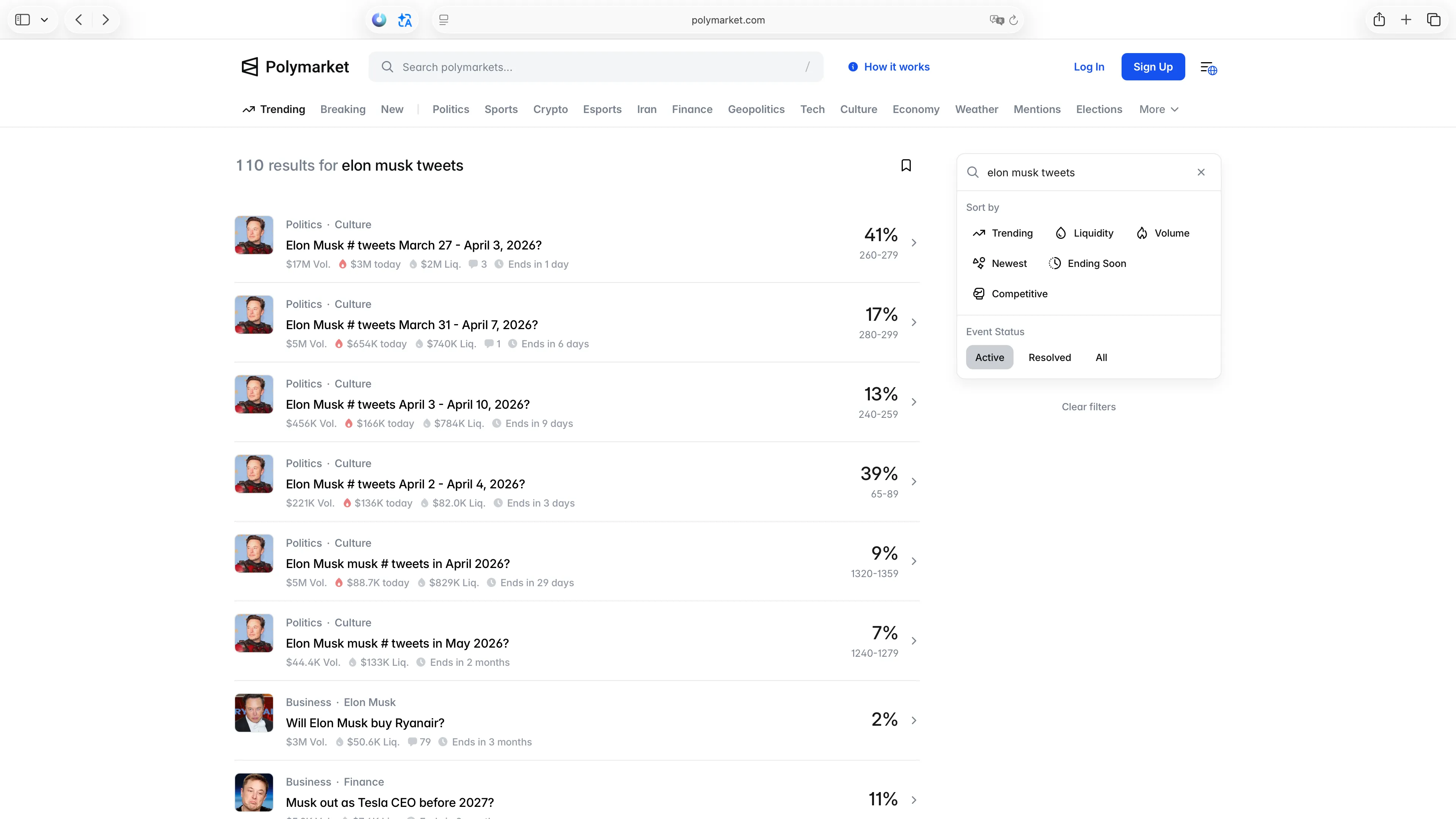 每个周期有多个投注区间,每个区间都有 YES / NO,可以中期投注/卖出,每个事件的总投注资金量在1000万美刀左右。