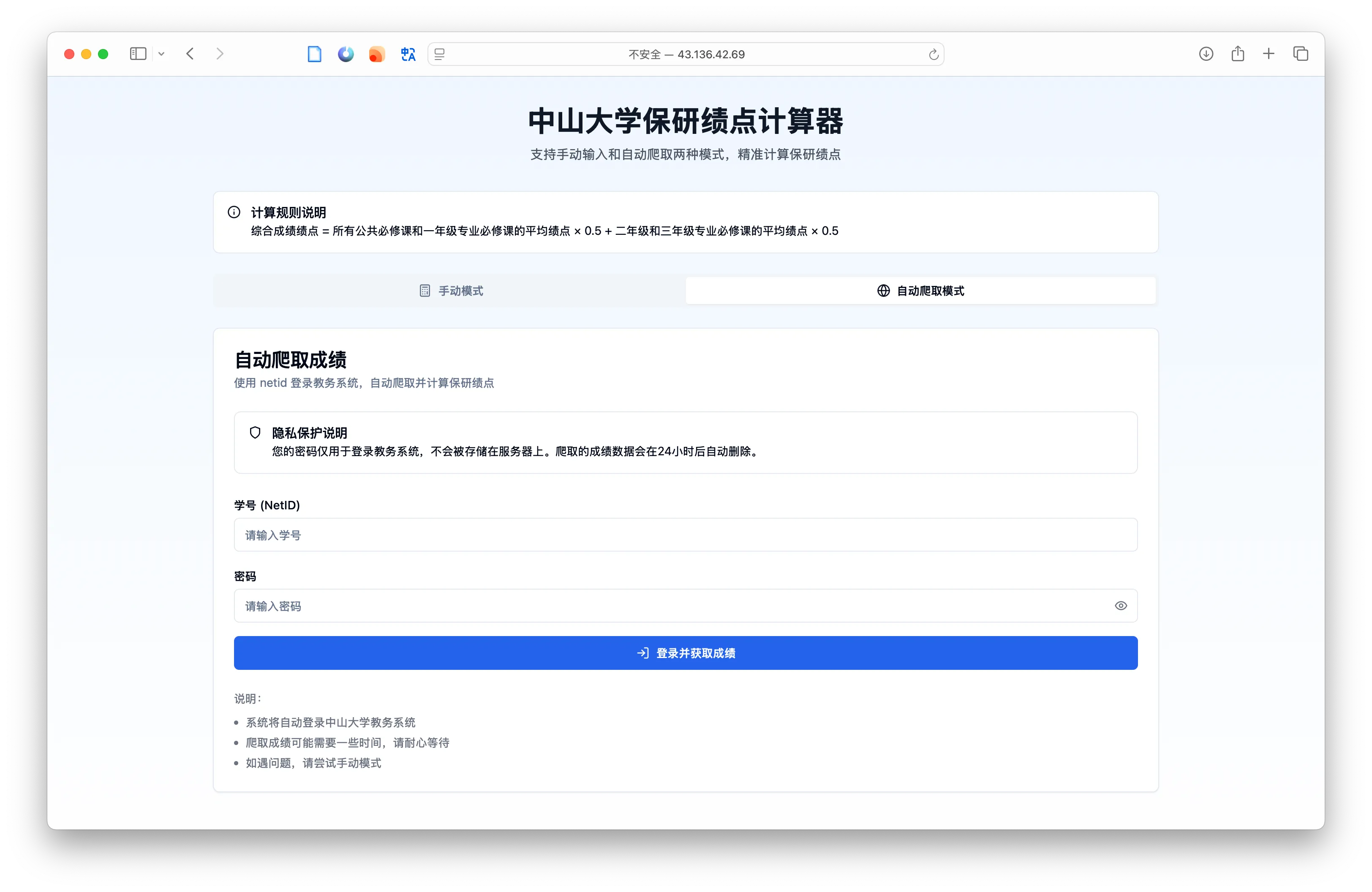 - 做了一个“保研绩点计算器 ↗”网站,提供netid和密码,可以自动爬取教务系统上的成绩,并计算保研规则下的绩点。