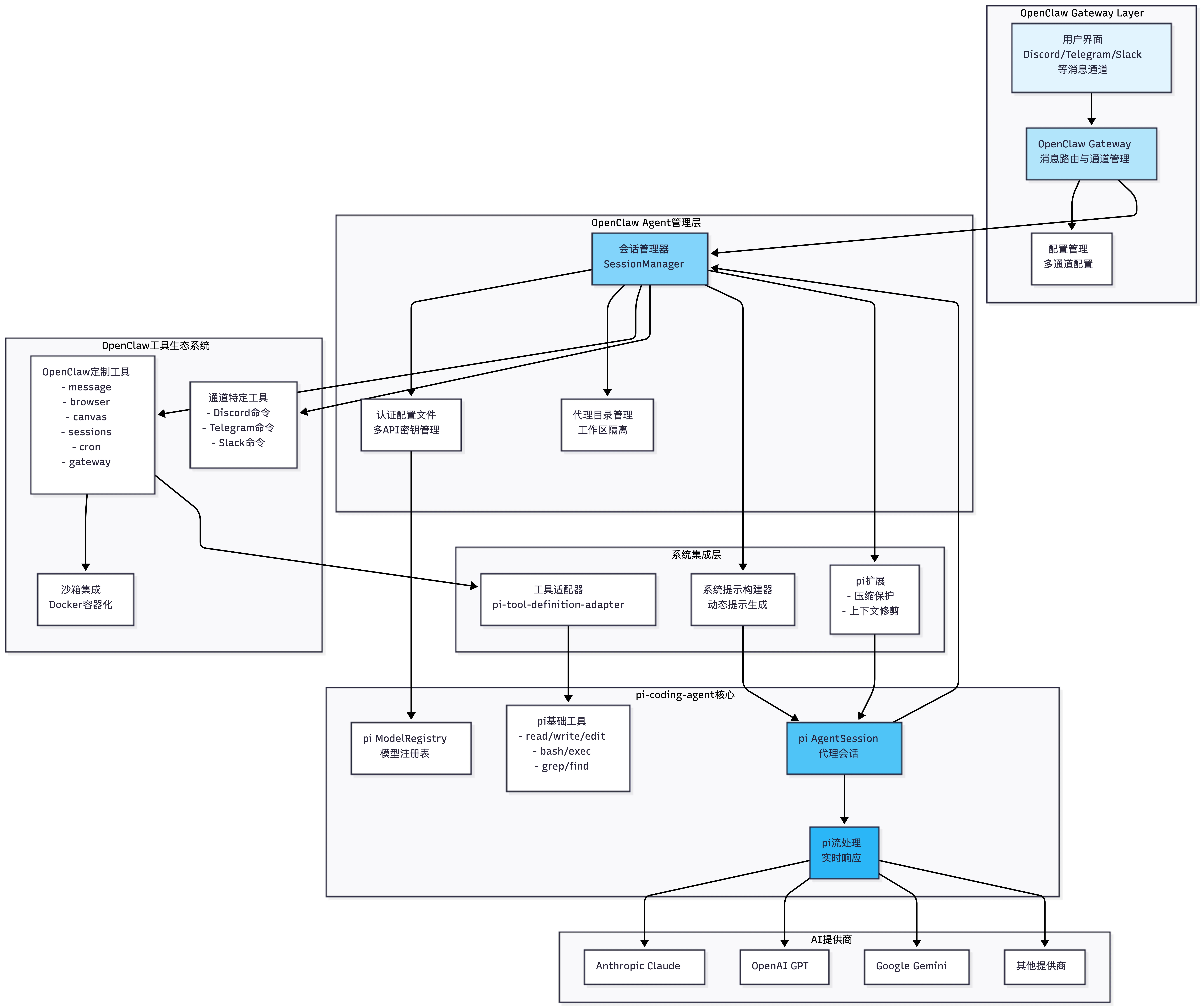 OpenClaw 本质上是对一个极简的 Agent(pi-agent) 进行了加强。